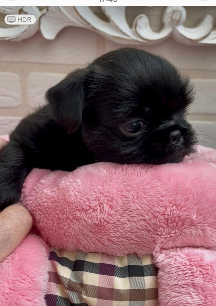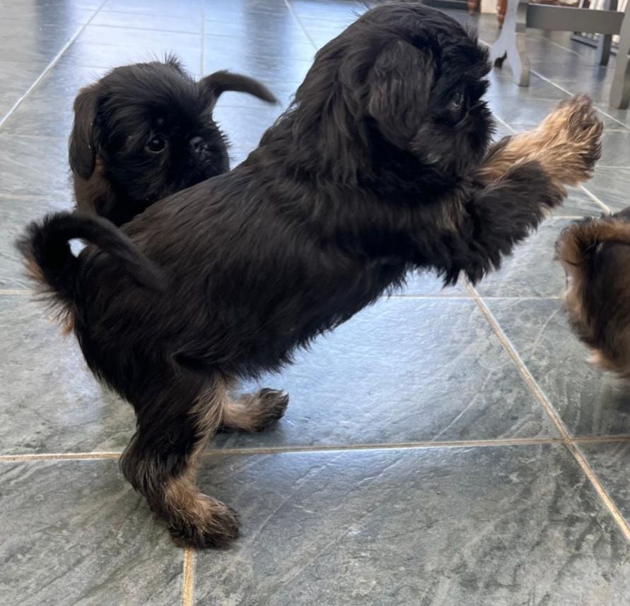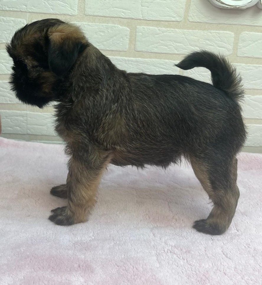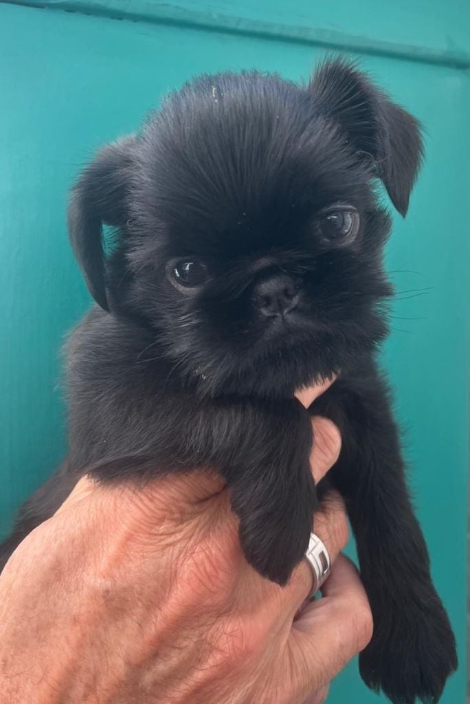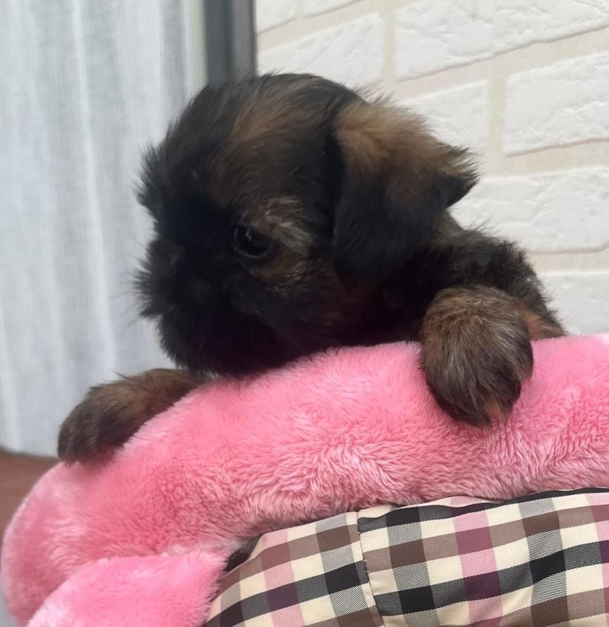 Chiot femelle bruxellois. Le plus petit gabarit de la portée. Attachante et câliné.
